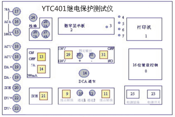 微機(jī)繼電保護(hù)測(cè)試儀是專業(yè)用于電力工作中的電力設(shè)備,是繼保工作者的好助手。儀天成電力設(shè)備有限公司的YTC401微機(jī)繼電保護(hù)測(cè)試儀正是擁有體積小,重量輕才成為了繼保工作者的首要選擇。YTC401單相繼電保護(hù)測(cè)試儀采用單片微機(jī)技術(shù),由自動(dòng)同期數(shù)字毫秒表,邏輯控制單元,多功能數(shù)顯單元,高精度數(shù)據(jù)采集及處理單元,電流、電壓輸出單元,過載及超量程保護(hù)單元等部分組成,自帶打印及顯示,測(cè)試過程全自動(dòng),大大提高測(cè)量精度及工作效率。本文就YTC401微機(jī)繼電保護(hù)測(cè)試儀的面板以及菜單詳情做以下的講解。