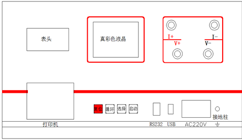 啟 動 鍵 輸出電流選擇完畢后按下此鍵,微機控制實現(xiàn)全部測試過程。