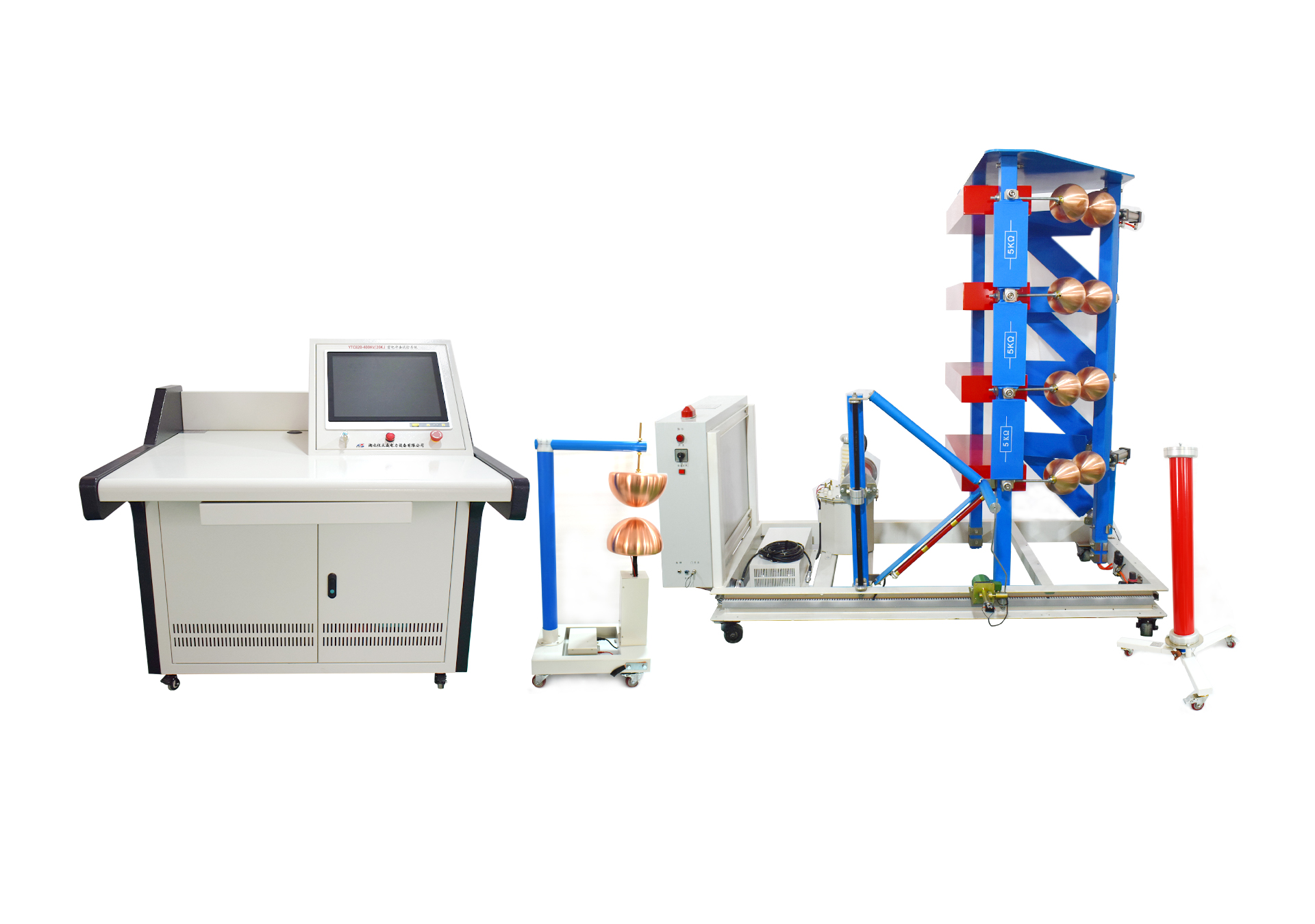 在人類所處的自然環(huán)境中,電閃雷鳴屬極為普遍之自然力現(xiàn)像,其落擊之處將顯現(xiàn)出極高之脈沖電流與電壓,且周邊區(qū)域亦會隨之產(chǎn)生較高水平的脈沖電壓。同樣地,于電力系統(tǒng)之內(nèi)的開關(guān)設(shè)備之合斷操作環(huán)節(jié),亦可能引發(fā)瞬間的脈沖電壓現(xiàn)象。此類突顯之瞬態(tài)脈沖電壓幅度常高達(dá)數(shù)十千伏乃至幾百千伏以上,這無疑將對設(shè)備造成損害,甚至威脅到人員生命安全。因此,開展沖擊電壓實(shí)驗(yàn)研究顯得尤為重要。另一方面,通過模擬自然雷電現(xiàn)象以探究放電機(jī)理,同樣具有深遠(yuǎn)的科學(xué)價值。在此過程中,我們常常依賴雷擊沖擊試驗(yàn)系統(tǒng)這套裝置來實(shí)現(xiàn)相關(guān)研究。接下來,我將詳細(xì)闡述這套裝置的主要功能及其應(yīng)用。