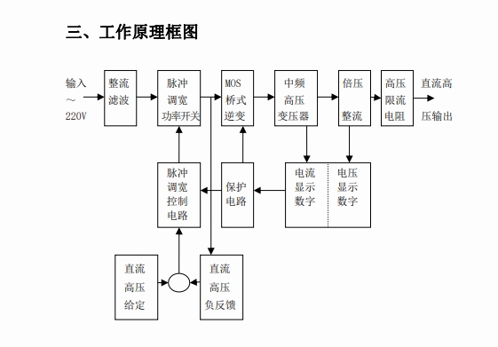 首先,直流高壓發(fā)生器接入 220V 或 380V 的交流電源,交流電源通過電源輸入模塊進(jìn)入設(shè)備內(nèi)部。接著,交流電流流入整流電路,整流電路一般由整流二極管或整流橋堆構(gòu)成。以常見的橋式整流電路為例,它利用二極管的單向?qū)щ娦裕诮涣麟娫吹恼胫芎拓?fù)半周分別讓不同的二極管導(dǎo)通,將正弦交流電轉(zhuǎn)換為脈動直流電。