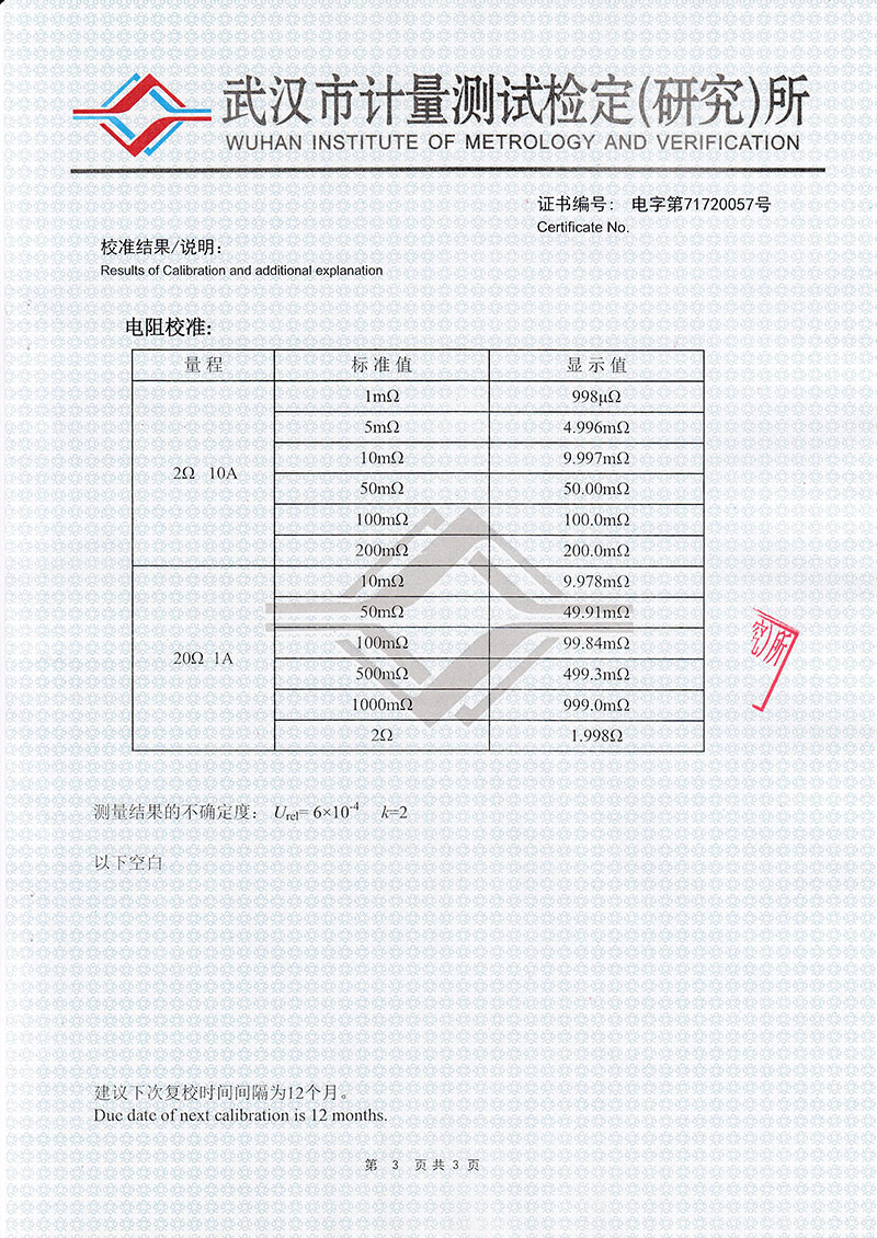 | 分辨率 | 0.1μΩ |
