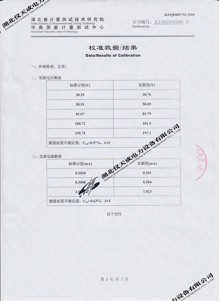 YTC620D氧化鋅避雷器特性測試儀的資質(zhì)證書